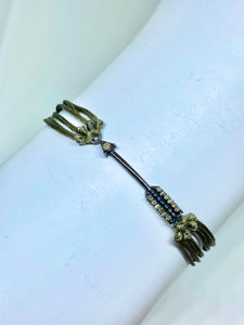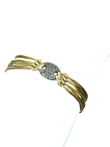 Lampsi (Double Diamond Bar): 14k Gold, Pave Diamonds, Greek Friendship Cord Bracelet