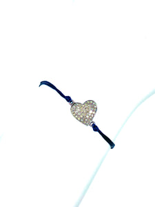Lampsi (heart): Sterling Silver, Pave Diamonds, Greek Friendship Cord Bracelet