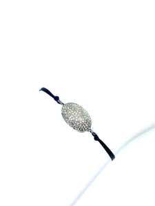 Lampsi (megalo): Sterling Silver Pave Diamonds Greek Friendship Cord Bracelet